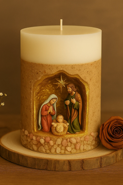 Cada pieza se convierte en un símbolo de luz, oración y cuidado, perfecta para ofrecer con fe o agradecer con amor.